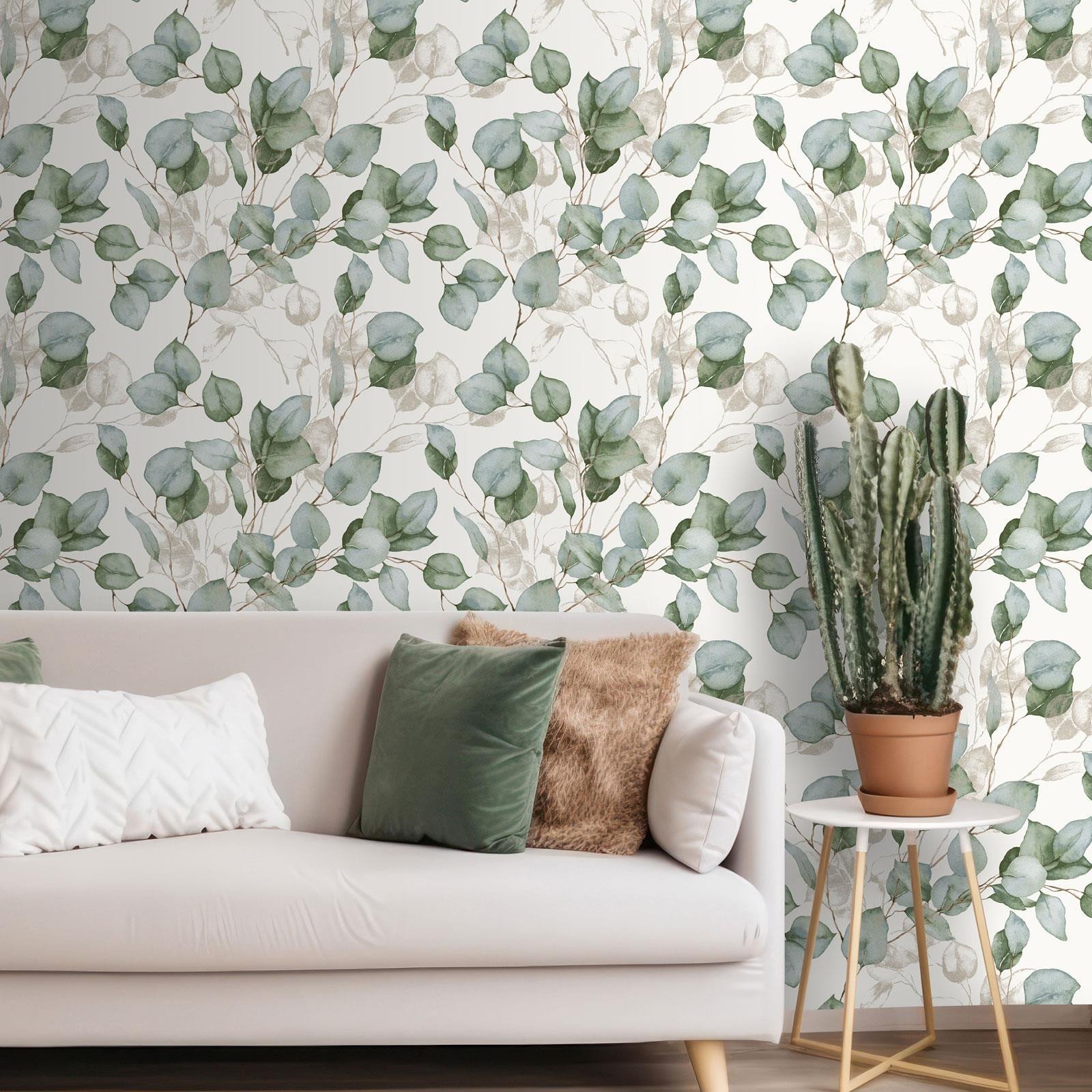 Eucalyptus Leaves World of Wallpaper Green White Metallic Leaf AF0036