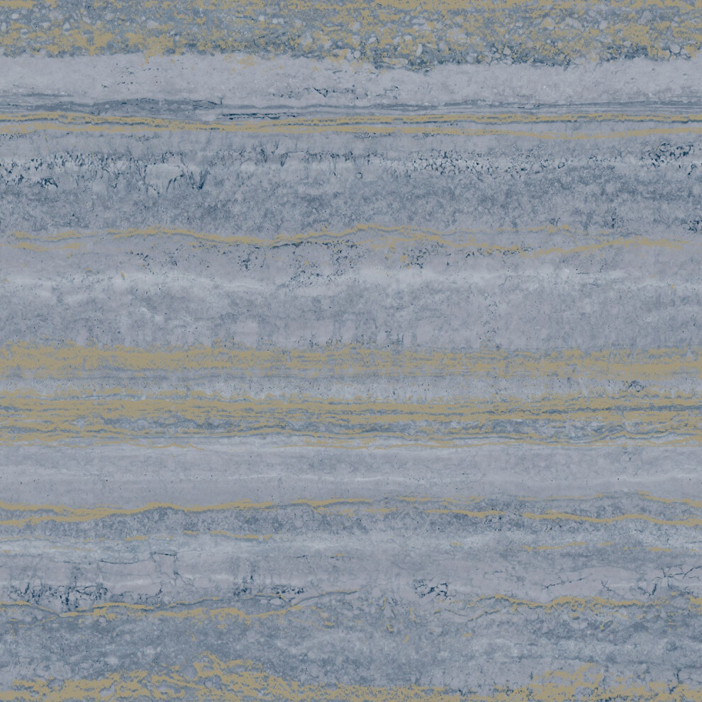 (Blue/Gold) Strata Marble Wallpaper World of Wallpaper