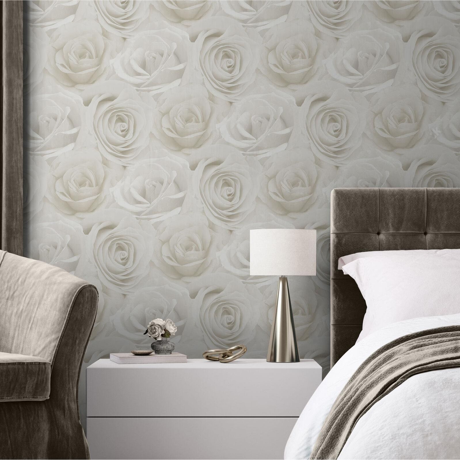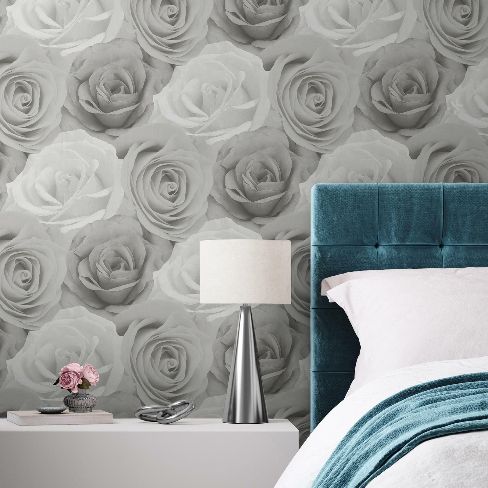 Melany Rose Flowers Wallpaper Grey AF0014 Mica Detailing World of Wallpaper