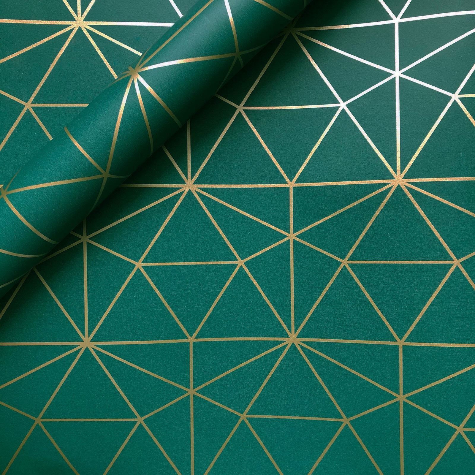 WORLD OF WALLPAPER METRO PRISM GEOMETRIC TRIANGLE EMERALD GREEN & GOLD WOW037