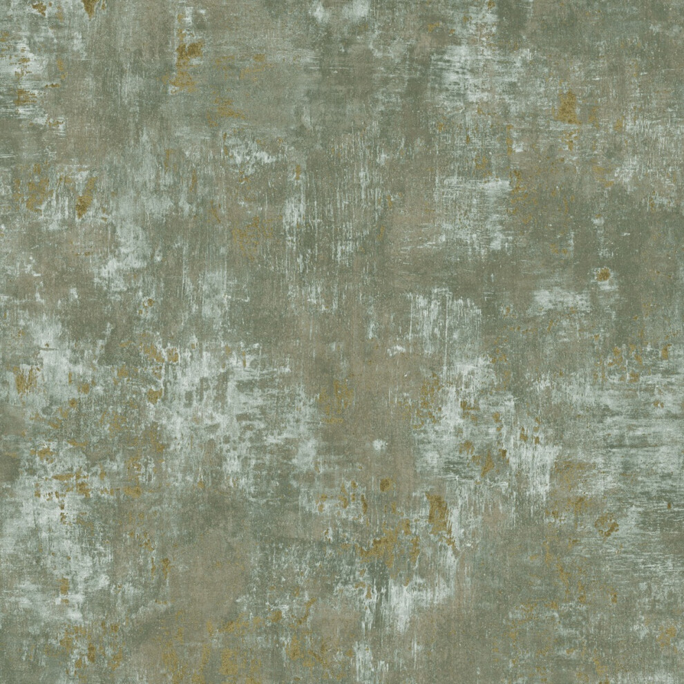 (Sage Green/Gold) Soho Concrete Textured Heavyweight Vinyl Wallpaper World of Wallpaper