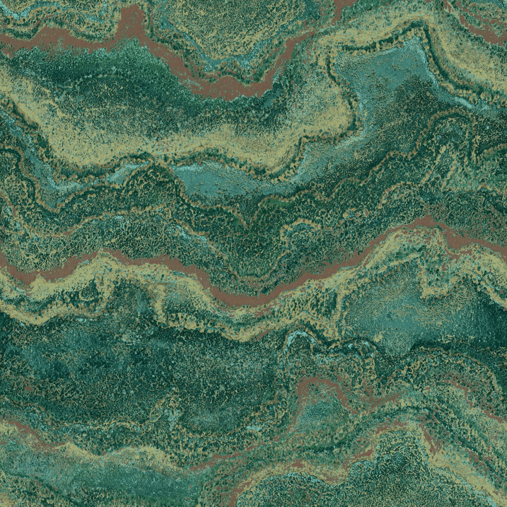 (Emerald Green/Gold) Mila Marble Textured Heavyweight Vinyl Wallpaper World of Wallpaper