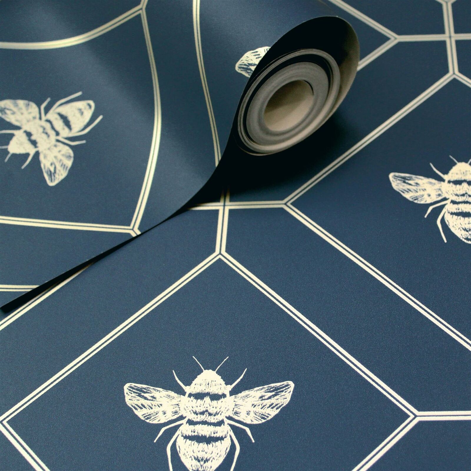 Metallic Honeycomb Bumblebee Navy & Gold 50401 Geometric World of Wallpaper