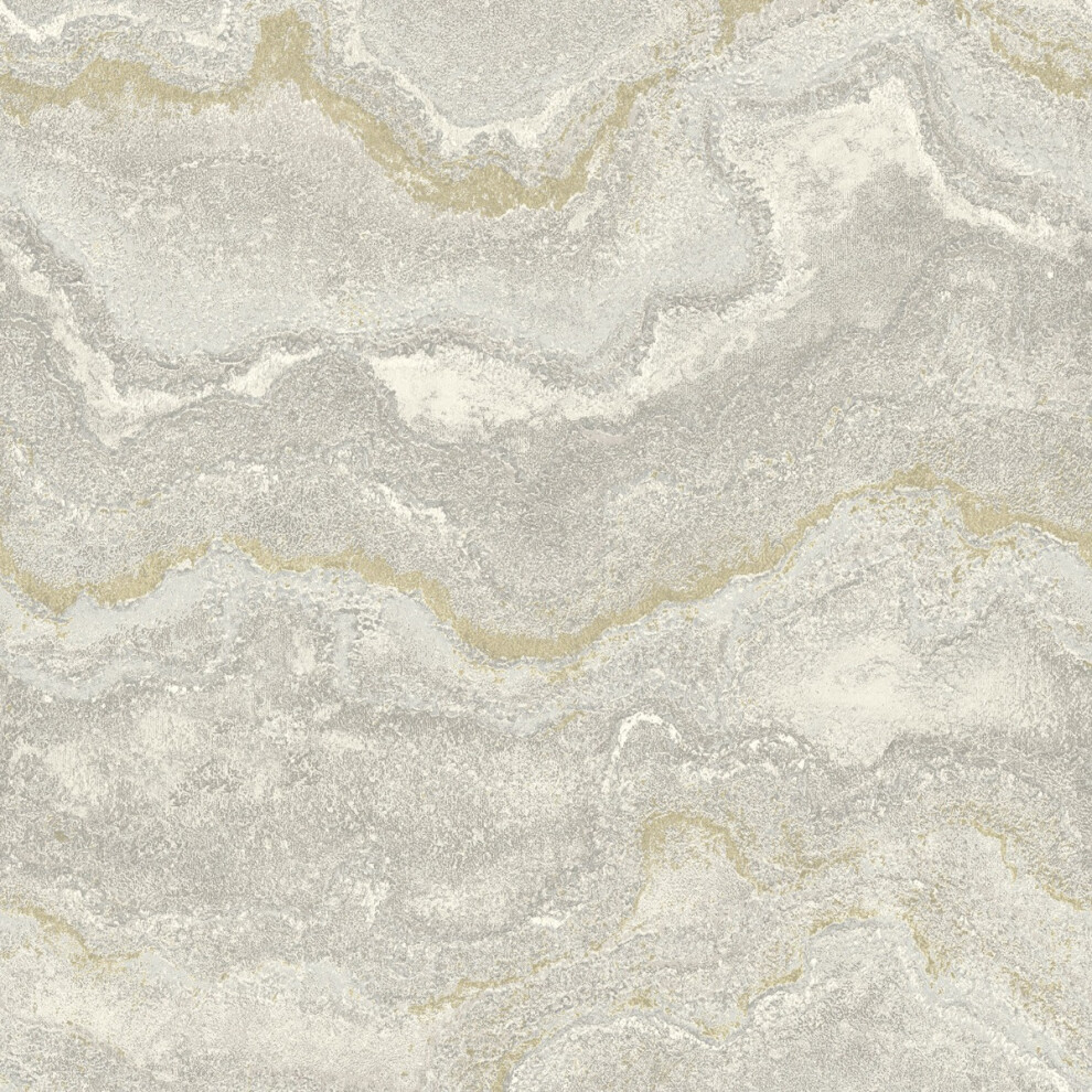 (Grey/Gold) Mila Marble Textured Heavyweight Vinyl Wallpaper World of Wallpaper