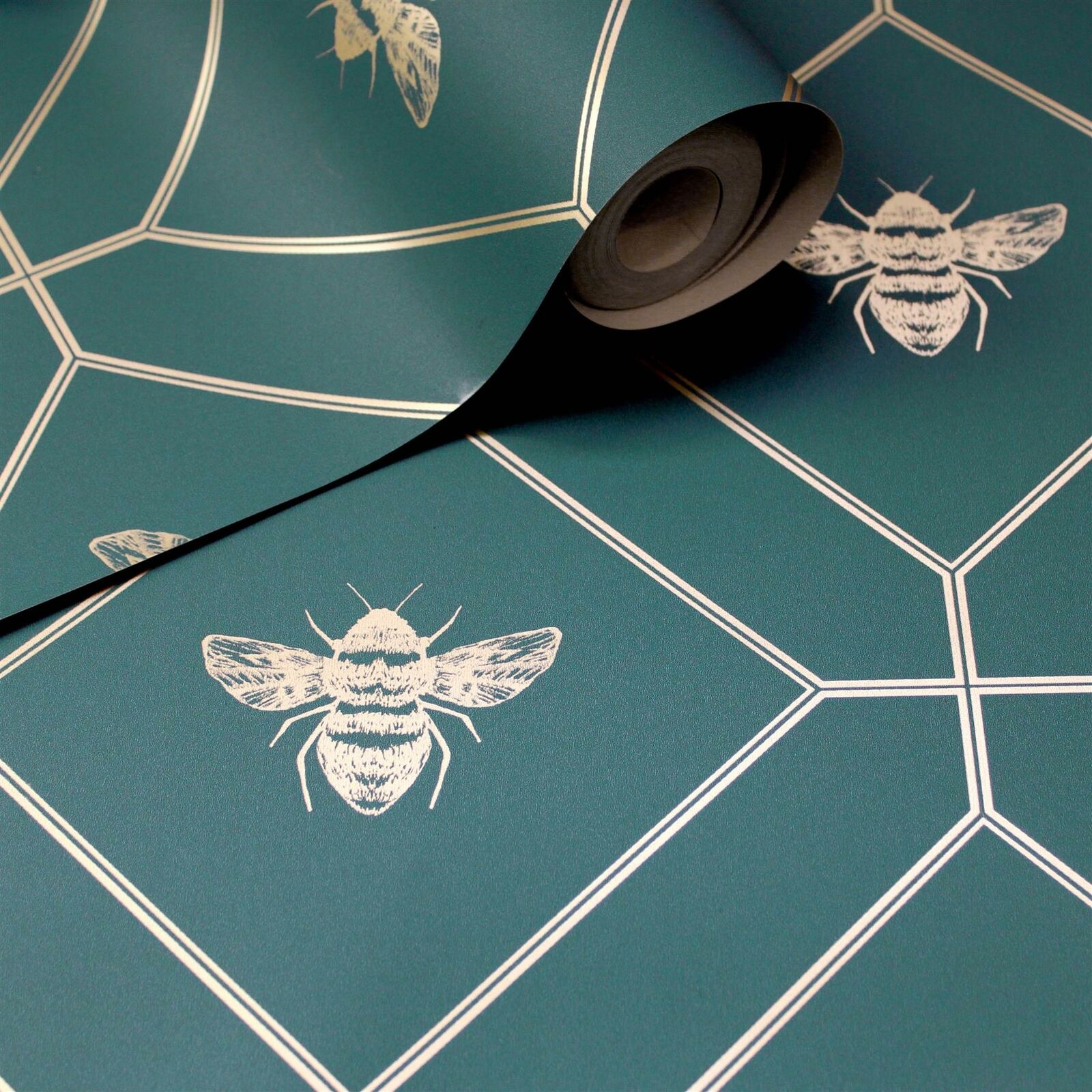 Metallic Honeycomb Bumblebee Teal & Gold 50400 Geometric World of Wallpaper
