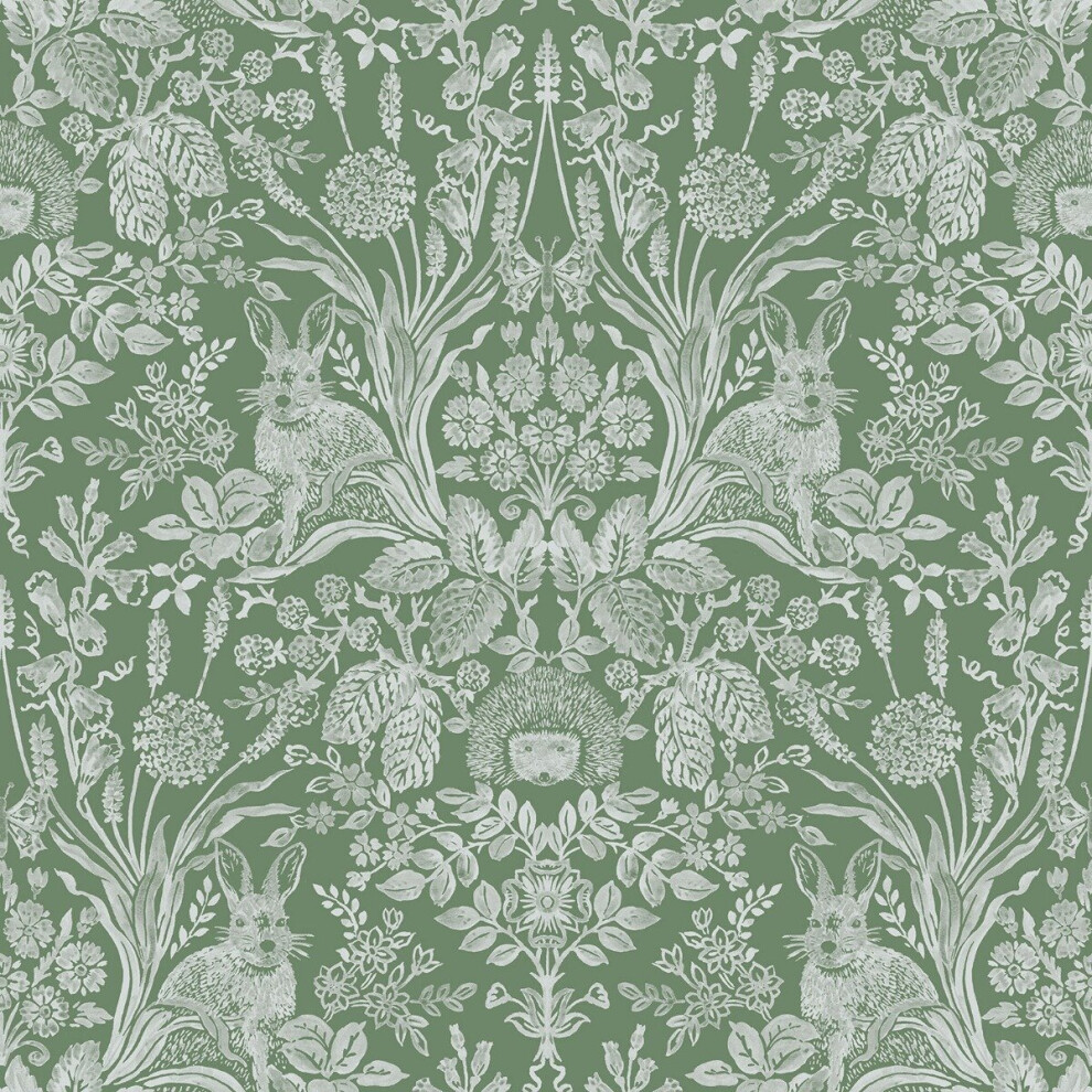 Harlen Woodland Damask Wallpaper Green World of Wallpaper 50342