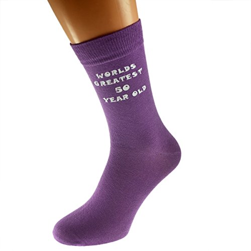 Worlds Greatest 50 Year Old Printed Ladies Purple Socks 50th Birthday Gift
