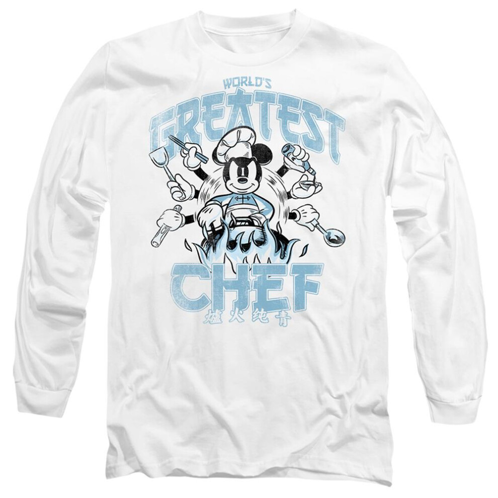 (S, White) Mickey & Friends Mens World's Greatest Chef Long-Sleeved T-Shirt