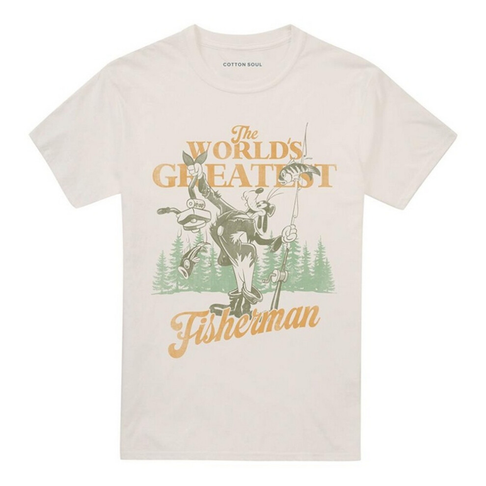(S, Natural) Mickey & Friends Mens The World's Greatest Goofy Fisherman T-Shirt