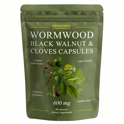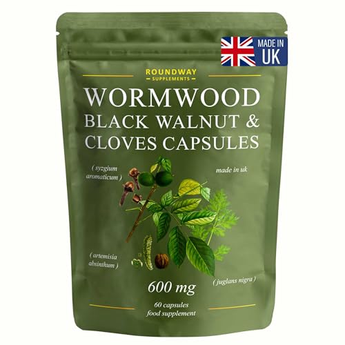 Wormwood Black Walnut and Clove Capsules | High Strength Supplement for Humans | 2 Months Supply | 60 Capsules, 600mg per Serving | Vegan Supplement and UK Made (Pack of 1)