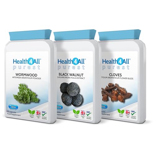 Health4All Wormwood, Black Walnut, Cloves Digestive Intestinal Detox Cleanse for Humans Set, 3x90 270 Capsules, 3 Step Gut Cleanse & Repair, Purest Vegan Colon Detox Supplement | Made in UK