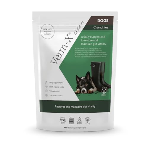 Verm-X All Natural Dog Treat Supplement, Original Crunchies for Dogs, Supports Intestinal Hygiene & Gut Vitality, Wormwood Free Recipe and Vet Approved - 100 g Suitable for all Dogs