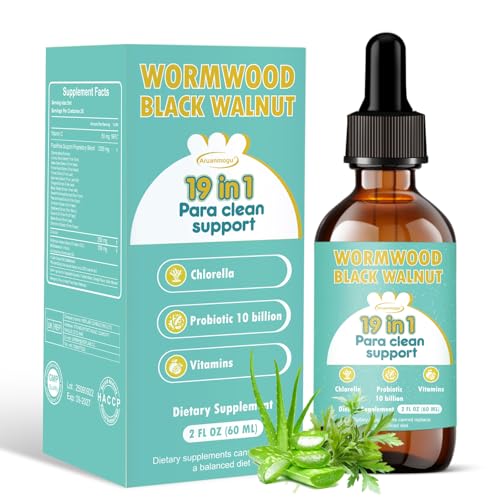 Wormwood Black Walnut Prasite Gut Cleanse Drops, 100 Billion Probiotics,Chlorella, Clove & Oregano,19-in-1 Herbal Liquid Detox Support for Adults and Children, Alcohol-Free Formula