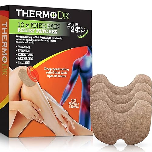 ThermoDR Knee Patches - Heat Patches Made with Non-Woven Fabric Infused with Menthol, Camphor, Eucalyptus, and Wormwood Plant Extract - Multi Use Patch for Muscle and Joint Aches 12 Pcs, 1 Pack