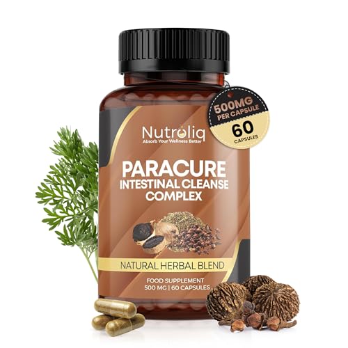 Nutroliq ParaCure Intestinal Cleanse Complex - Dietary Supplement with Organic Wormwood Black Walnut and Clove Extract - Natural Herbal Blend for Digestive Wellness - 1000mg per Serving - 60 Capsules