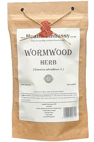 Health Embassy Wormwood Tea | Dried Loose Herb | Artemisia Absinthium | GMO Free | Caffeine Free (100g)