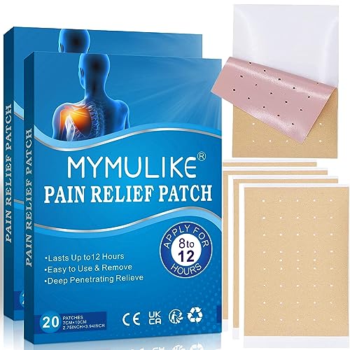 Pain Relief Patches, 60 Count MYMULIKE Heat Patches for Knee, Back and Shoulder, Natural Wormwood Herbal Pain Relief Patches, Relieves Muscle Soreness for Knee, Lumbar Spine Knee Pain Patches