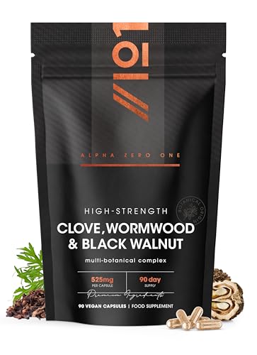 Clove, Wormwood & Green Black Walnut Hull 525mg – 90 Vegan Capsules – High Strength Multi-Botanical Complex Supplement – Resealable and Recyclable Pouch by Alpha01
