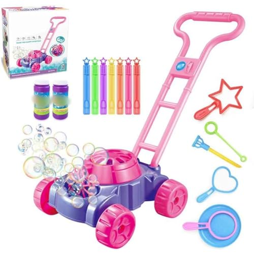 Bubble Lawn Mower for Toddlers, Kids Automatic Bubble Blower Maker Machine, Pink and Purple, Outdoor Gardening Push Toys, Birthday Gifts Summer Toys for Girls Boys