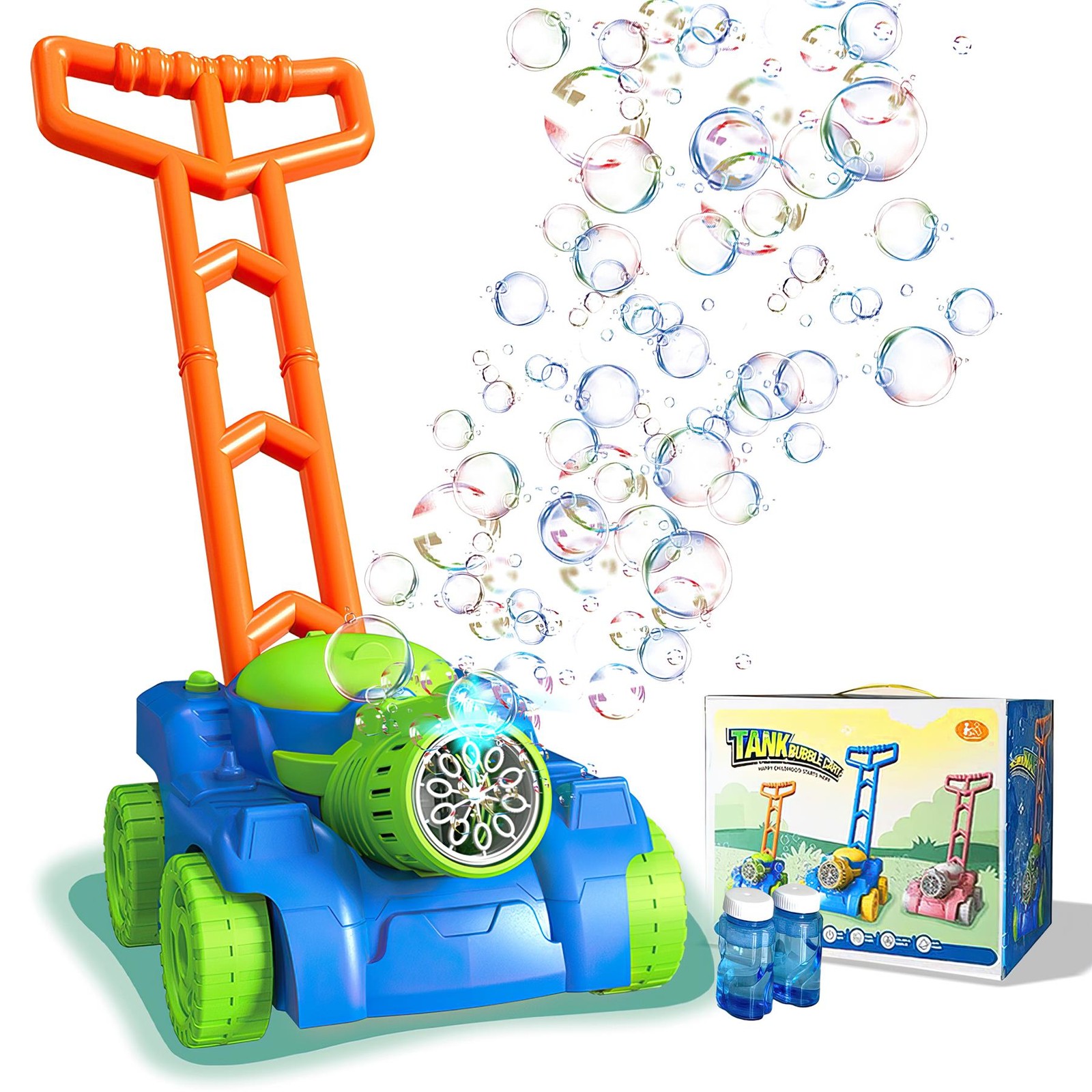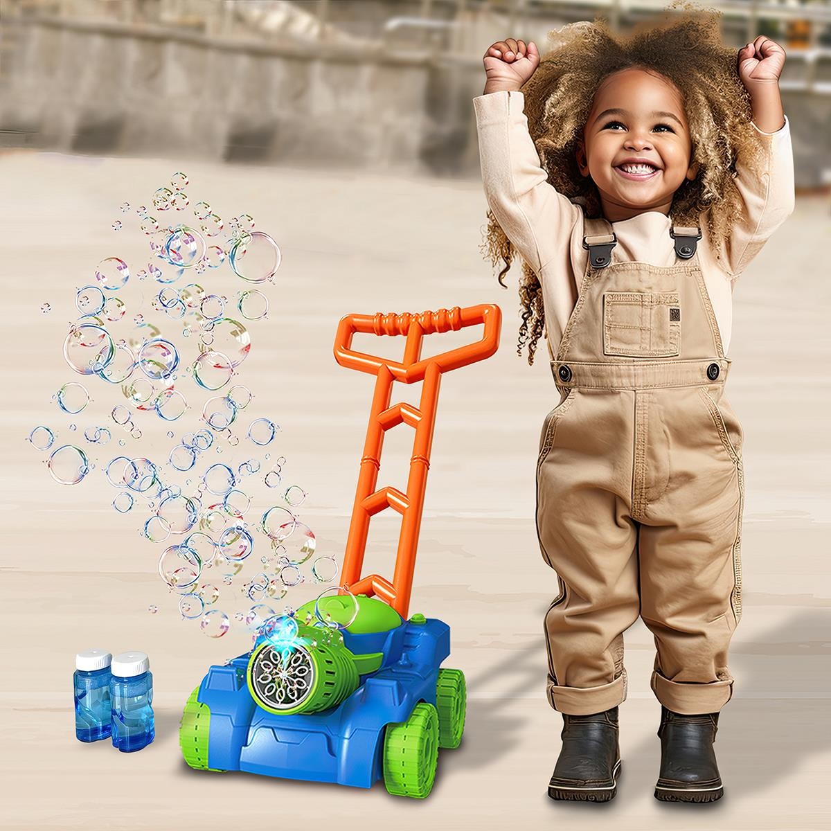 Kids Automatic Bubble Maker Outdoor Lawn Mower Blower Machine Lights Summer Play