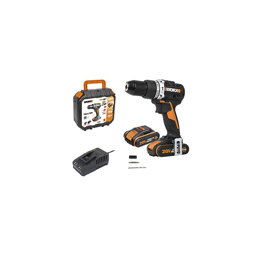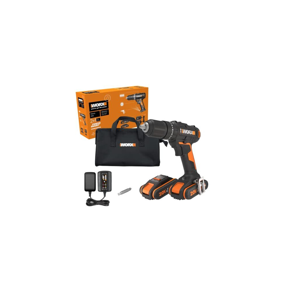 WORX WX370.1 PowerShare 20V Cordless Combi Hammer Drill Kit with 2 Batteries, Charger and Carry Bag - High Torque Impact Drill Set for Wood, Metal and Masonry