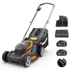 Worx WG745E 40V 41cm Cordless Brushless Lawnmower – Ideal for Medium to Large Gardens Up to 600㎡ – Includes 2x 4.0Ah Batteries & Charger, Cut-to-Edge, Striped Lawn Roller, Foldable Handle