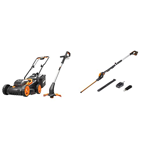 WORX WG927E Dual 20V Battery 34cm Cordless Lawn Mower & 18V (20V MAX) Cordless Grass Trimmer & WG252E 18V (20V MAX) Cordless Pole Hedge Trimmer 45cm 2.0Ah Battery