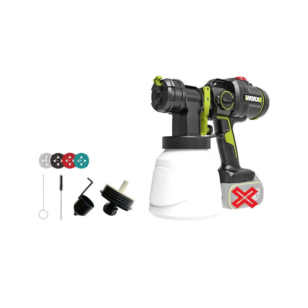 Worx WU056 20V Brushless Electric Spray Gun - Home Paint Sprayer with Flow Control & 4 Nozzles (Battery & Charger Not Included)