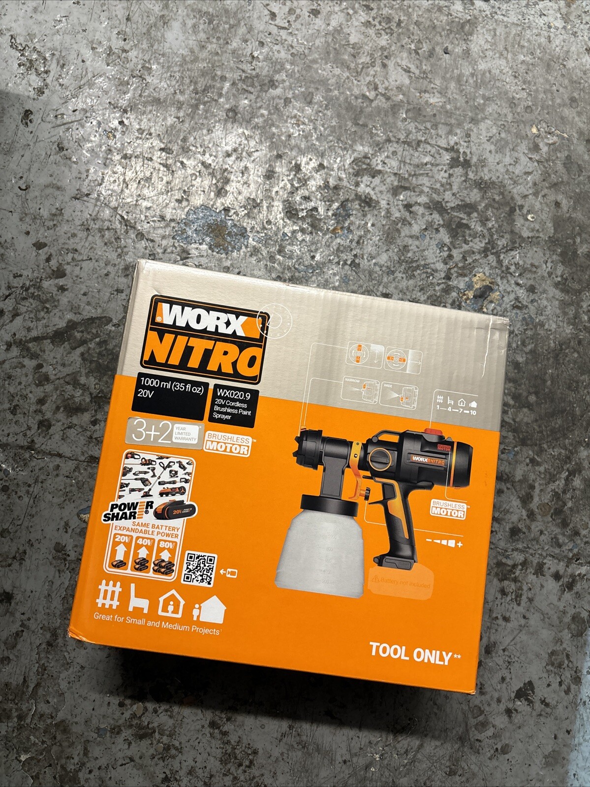 WORX Powershare Cordless Paint Sprayer 20V 1000ml BODY ONLY WX020.9 3 Spray Mode