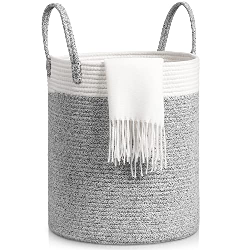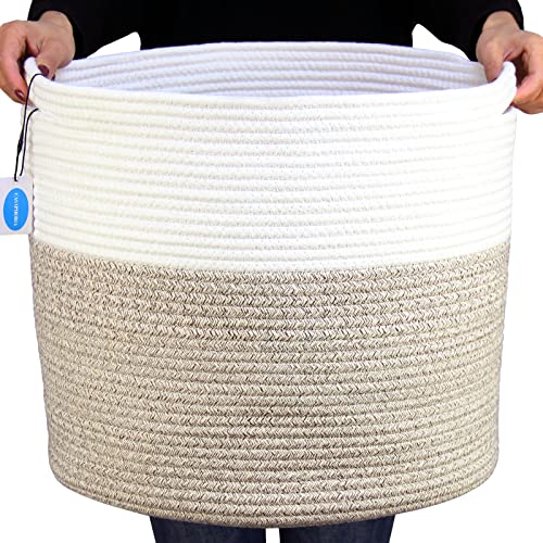 GOCAN Storage Baskets for Organizing D22"H14" Large blanket basket laundry basket Cotton Rope Woven Basket for toy towl in Living Room (Ltgrey/Beige) XXXL