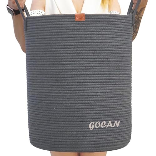 GOCAN large tall sturdier Laundry Hamper Basket Woven Storage Baskets for clothes Pillows Blanket Toy in living or bed room decoration H50XD38cm darkgrey