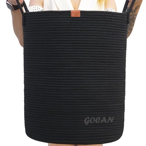 GOCAN large tall sturdier Laundry Hamper Basket Woven Storage Baskets for clothes Pillows Blanket Toy in living or bed room decoration H50XD38cm black