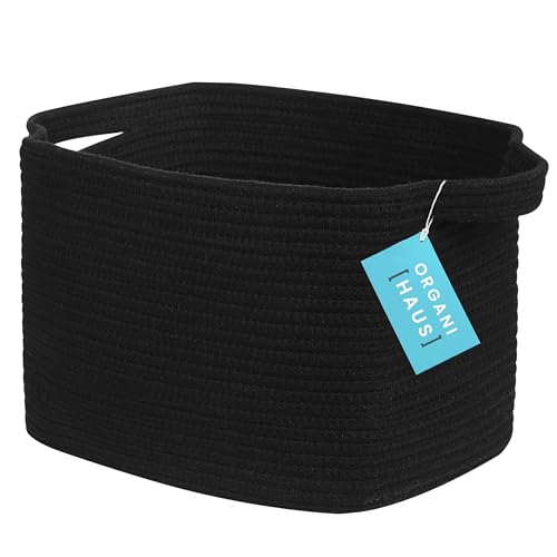 OrganiHaus Storage Baskets for Shelves & Bathroom, Small Laundry Basket, Cotton Rope Woven Organiser for Clothes, Toys & Towels, Decorative Home Storage Box - 34x28x24cm, Black