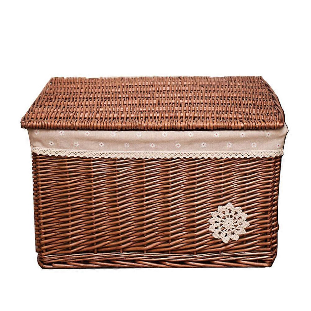 Laundry Basket Hand Woven Storage Baskets with Lid Dust Clothing Basket Storage Box Rectangular Wardrobe Container Sundries Organizer for home use(With cover)
