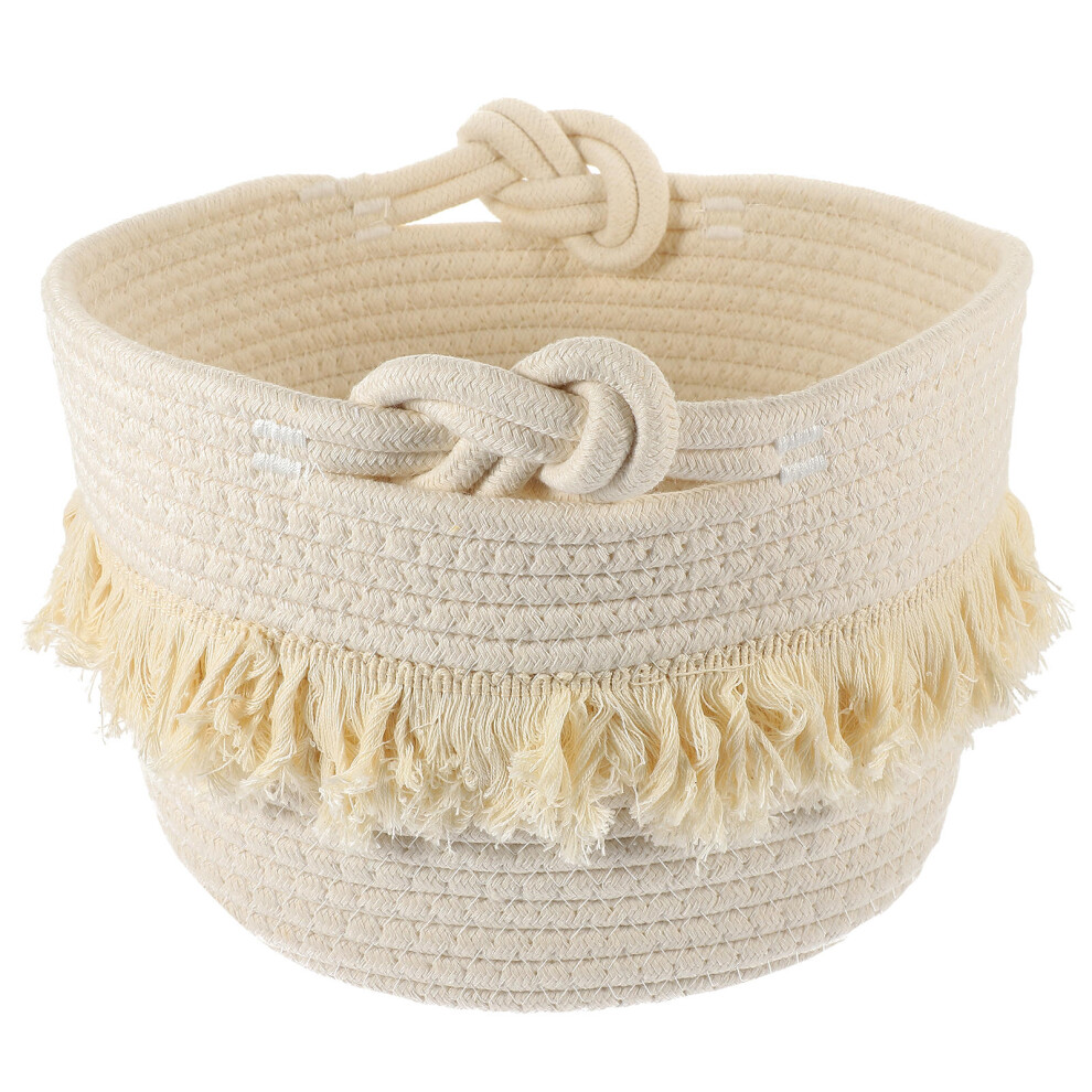 Laundry Basket Solid White Home Organization And Storage Storage Baskets Cotton Rope Woven Laundry Basket Sundries Organizer for home use(S)