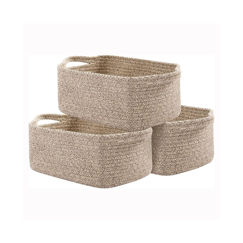 Cotton Rope Storage Baskets 3 Pack for Shelves, Decorative Woven Baskets for Laundry, Toys, Towels, Brown Color