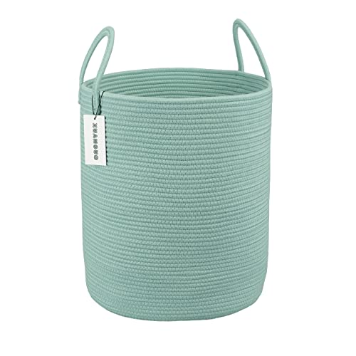 XUANGUO Cotton Rope Laundry Basket Hamper for Clothes Woven Storage Basket for Living Room Bedroom Boho Tall Rope Baskets for Blanket Toys Pillow Towels Baby Nursery Hamper Bin Large light green