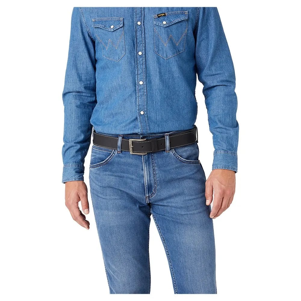 Wrangler Men's Stitched Belt, Black, 85 cm UK