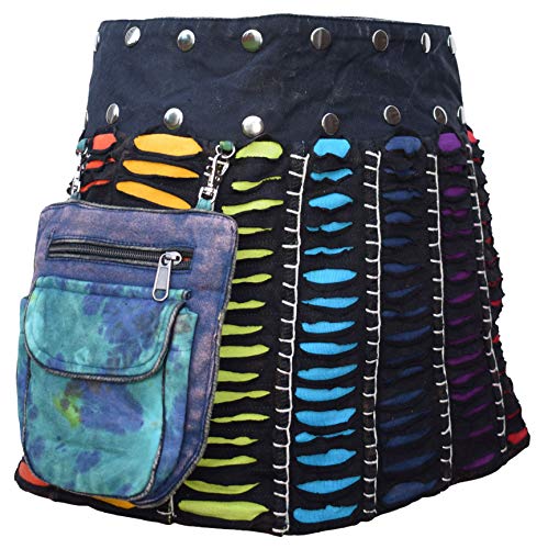 Gheri Womens Reversible Patchwork Cotton Tie Dye Popper Wrap Around Skirt Ripped Black