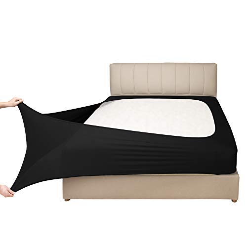 Mrs Awesome Stretch Jersey Box Spring Cover Wrap Around, Bed Skirt Alternative, Ultra Soft & Wrinkle Resistant, Queen/Queen XL, Black