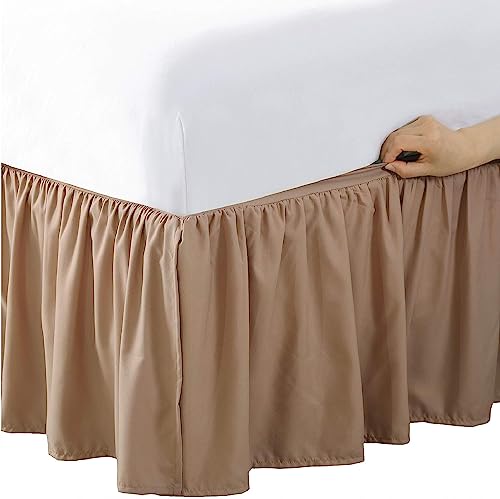 Bed Maker’s Never Lift Your Mattress Wrap Around Bed Skirt, Classic Style, Low Maintenance Wrinkle Resistant Fabric, Traditional 14 Inch Drop Length, King, Mocha