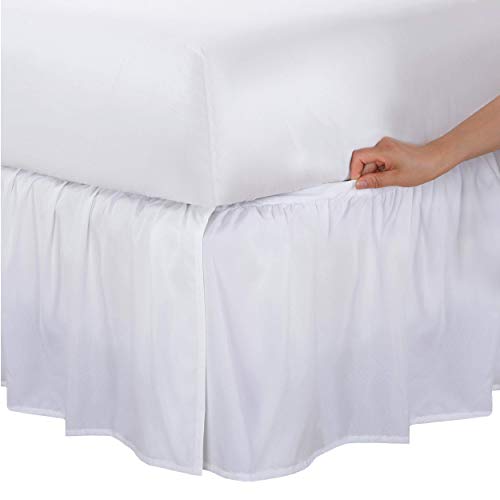 Easy Fit Solid Elastic Wrap Around Bed Skirt, Easy On/Off Dust Ruffle (18 Inch Drop), Twin/Full, White