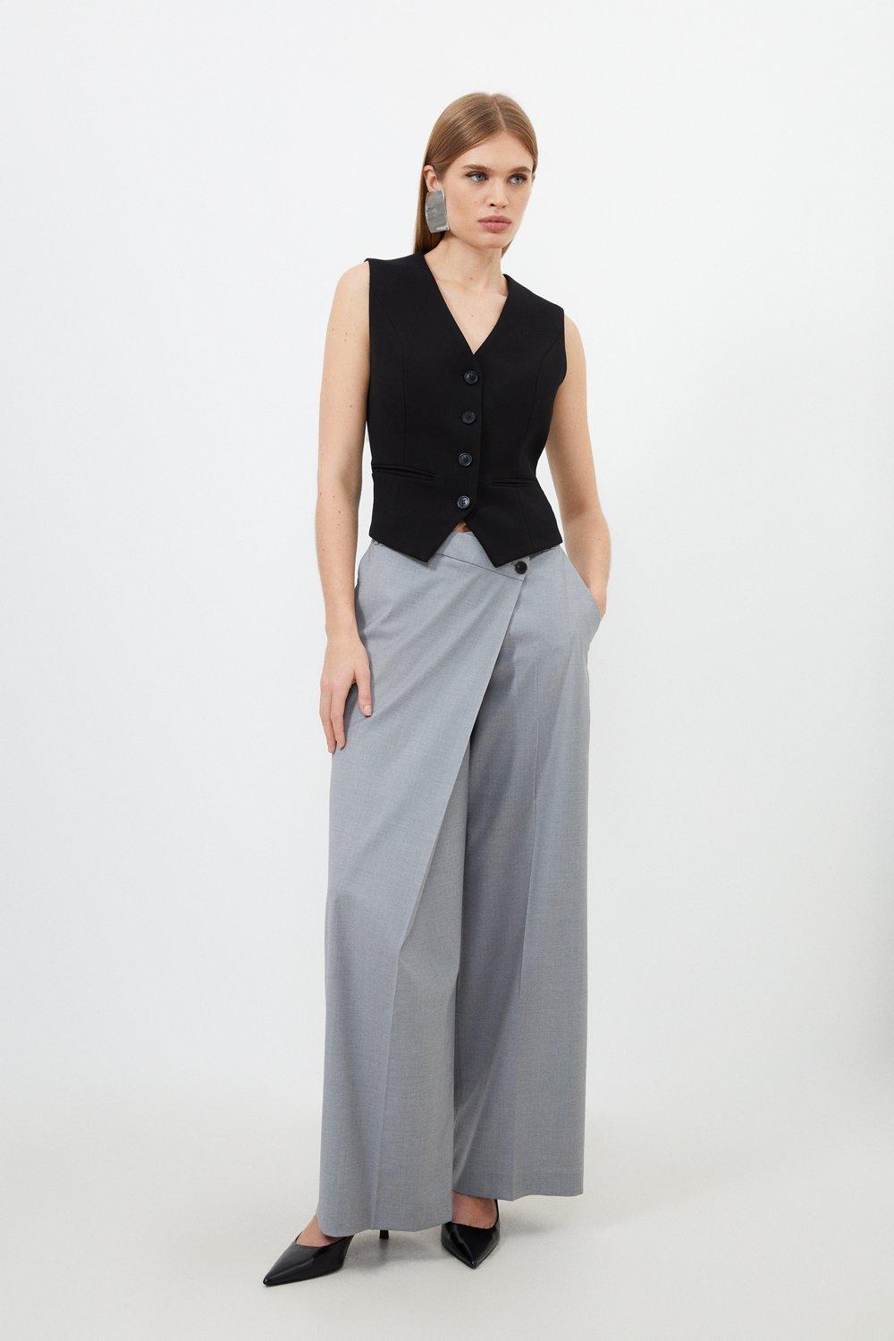 Tailored Wool Blend Wrap Detail Wide Leg Trousers