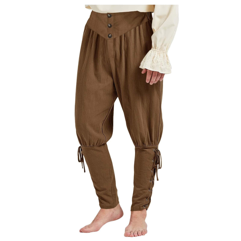 Men's Fabric Leg Wrap Pirate Trousers Viking Summer Trousers Ankle Strap Laceup Trousers Gothic Medieval Trousers Adult Men's Retro Trousers, brown