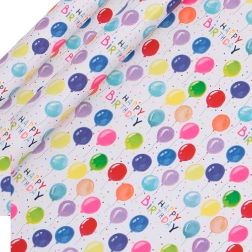 Glick 2 Pack Neon Birthday Balloons Wrapping Paper, 2 Recyclable Rolls (2m x 70cm), Bold Multicolour Design, Eco-Friendly