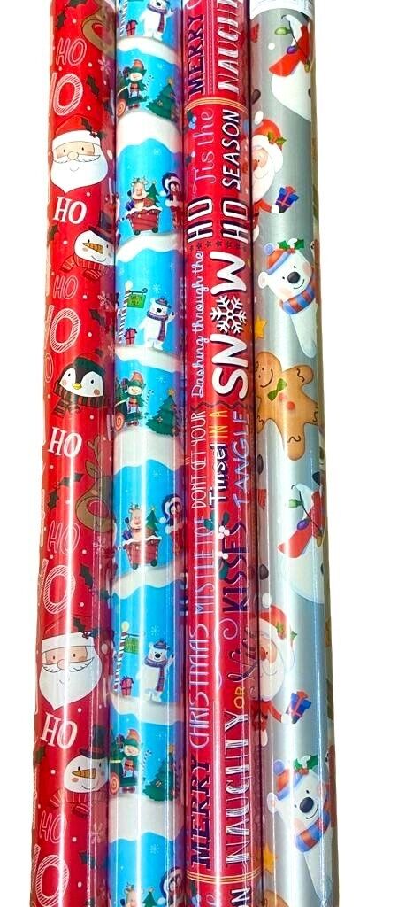 Large Size Christmas Wrapping Paper Rolls, 4 Rolls, 76Cm X 305Cm, Xmas Gift Wrap