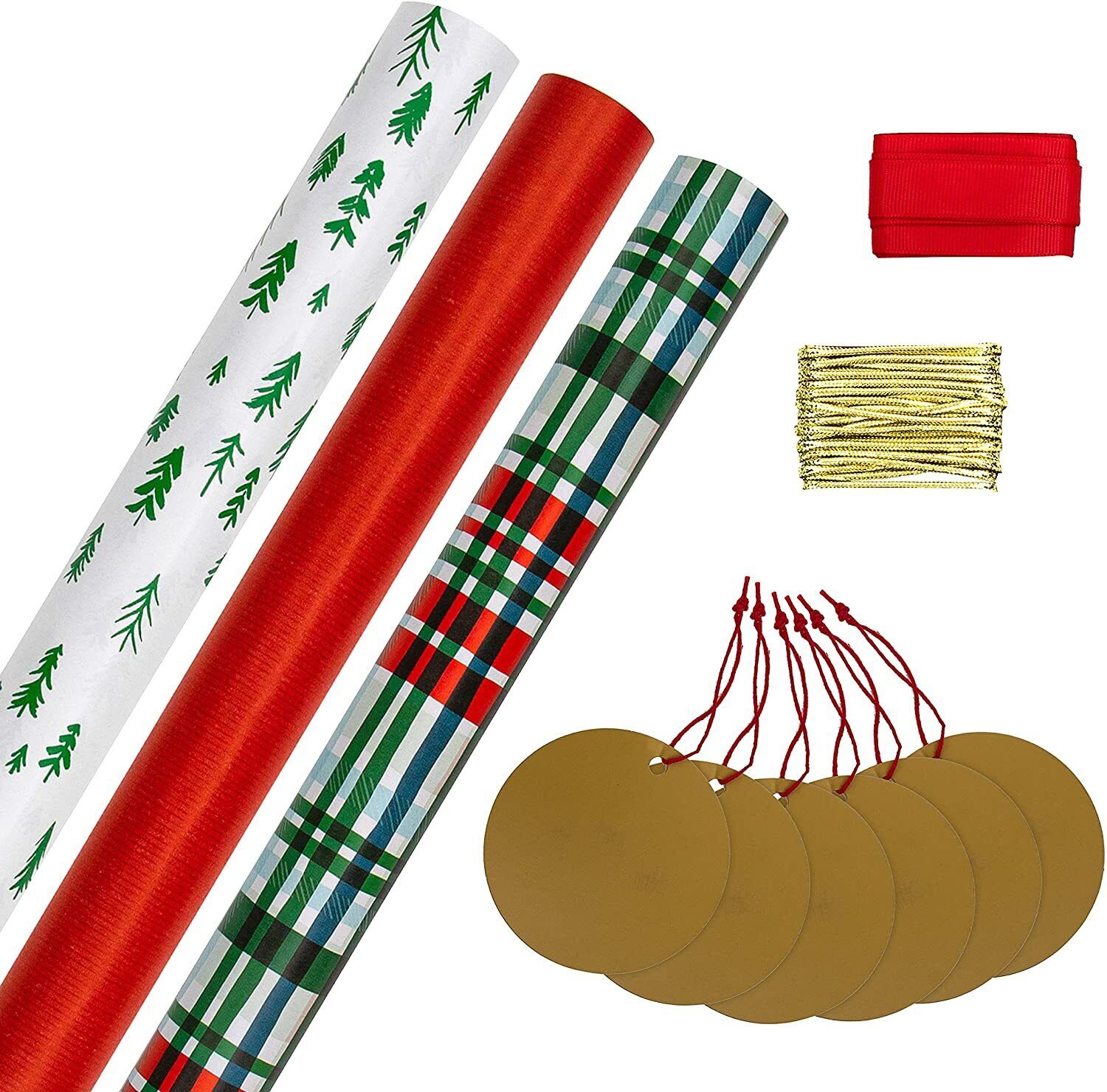 Hallmark Christmas Gift Wrapping Paper Bundle 3 Rolls, 6 Gift Tags & 6m Ribbon