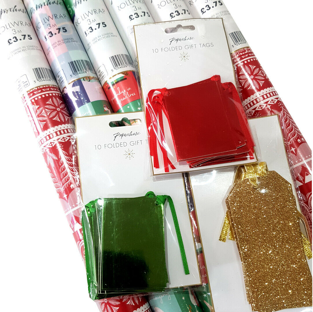 Christmas Gift Wrapping Paper. 6 Rolls with 30 Assorted Tags. By Paperchase