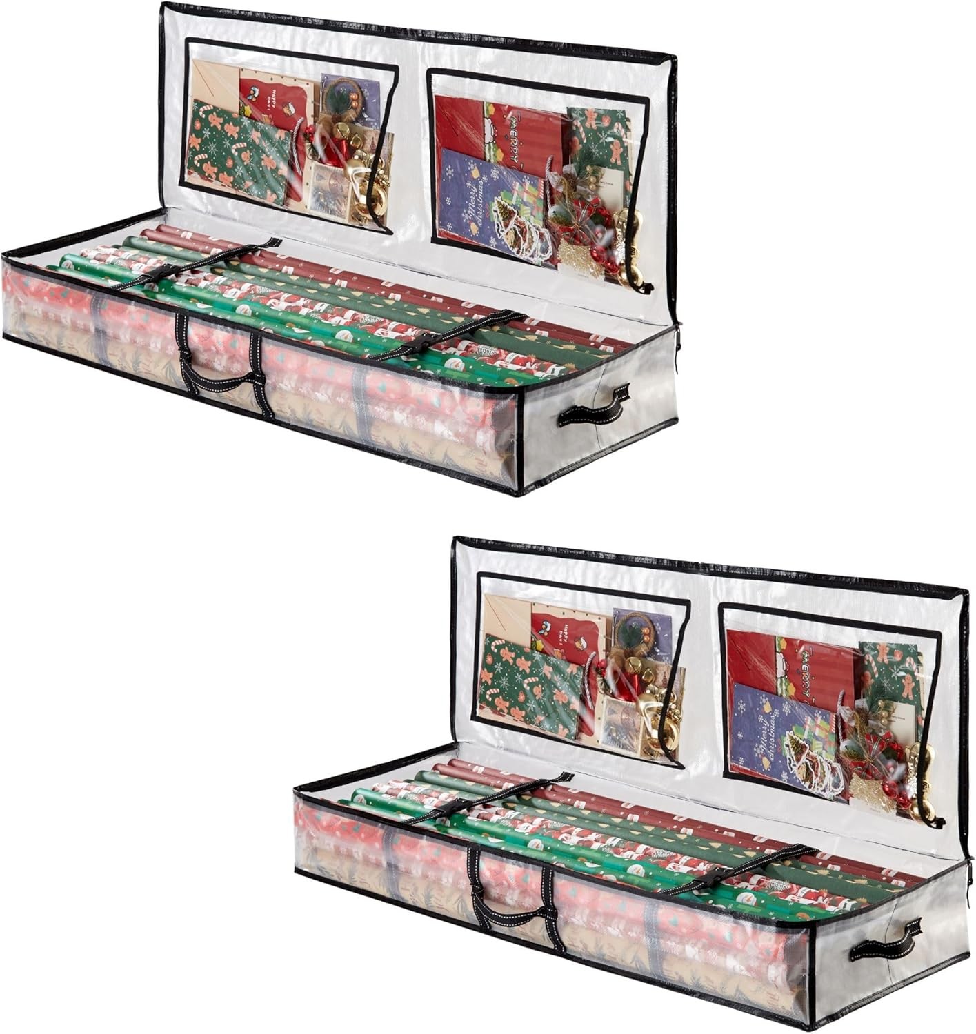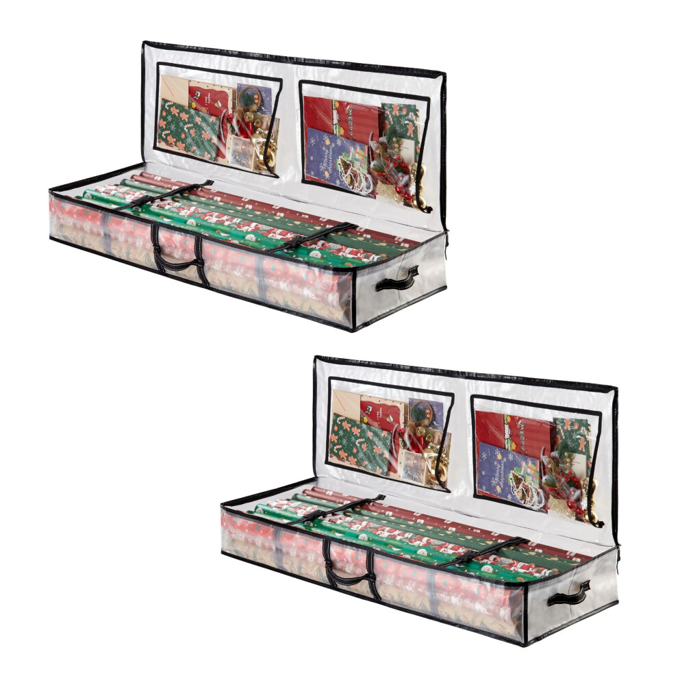 VENO 2 Pack Clear Wrapping Paper Organizer Storage Box for Christmas Gift Bags and Holiday Accessories, Underbed Storage Container with Interior