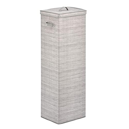mDesign Tall Gift-Wrapping Paper Storage Box with Handles, Holder for Christmas and Holiday Organizer Container - Removable Lid for Rolls of Wrap, Inside Closet Storage Totes, Stripe, Taupe/Tan
